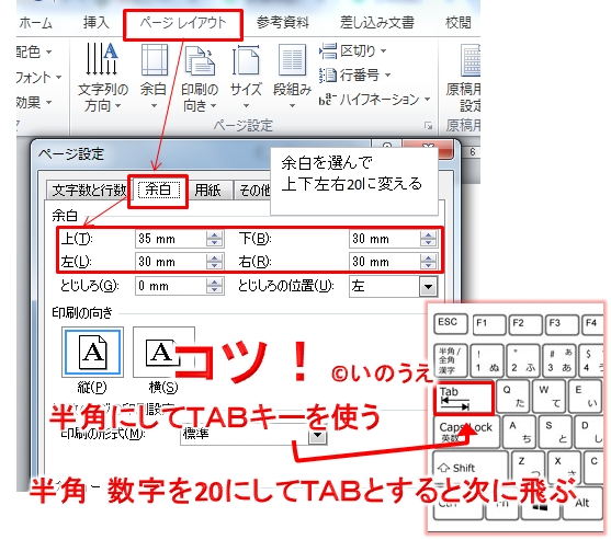 「余白」を先にしないで「用紙」を先に設定すると全部狂うので!ご注意を・・・